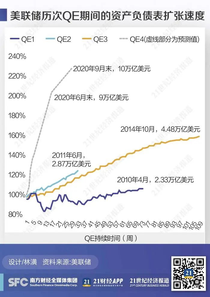美联储在美东时间4月16日发布的数据显示,4月15日美联储资产规模达到6.4万亿美元,比一周前高出近3000亿美元。美联储继续走在快速“扩表”的道路上。