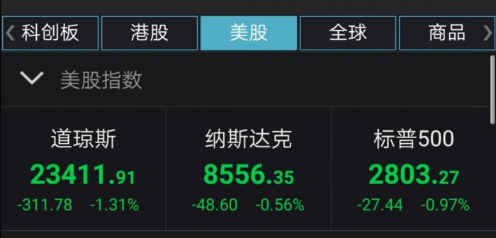 美股低开,道指开盘跌0.83%,标普500指数跌0.55%,纳指跌0.54%。截至目前,道指跌幅已逾1%。