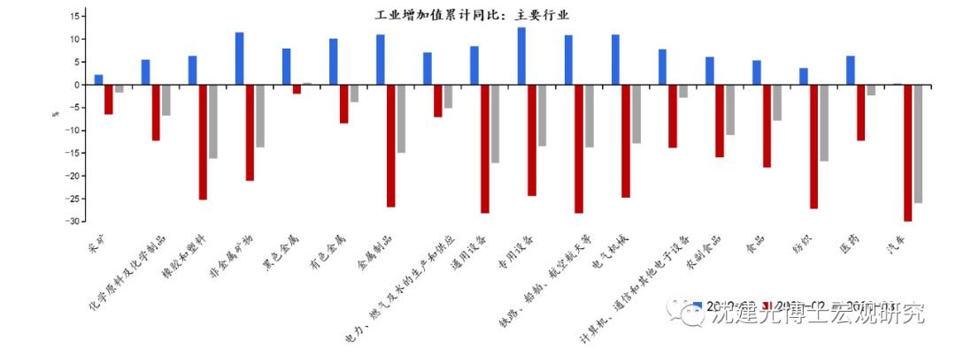 从工业上来看,3月份复苏明显,工业增加值跌幅收窄。专用设备、铁路、机械等都出现了明显的反弹,但汽车还是表现较差。