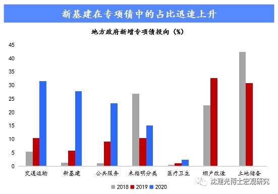 中央明确专项债投向,投向新基建的比例快速增长,专项债“杠杆”将撬动更大的新基建投资。现在专项债主要投向交通运输、新基建,包括5G、特高压等。但其实新基建远不止这些,事实上,数字化改造、传统领域的数字化升级就是新基建,新基建就是数字基建。