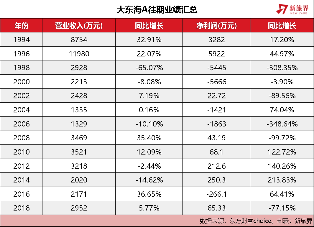 1996年,巅峰时期的大东海A,实现营业收入近1.2亿,归属上市公司股东的净利润(以下简称:净利润)近6000万;2019年实现营业收入2594万元,同比减少12.13%。净利润为75.67万元,同比增长15.83%;新型冠状病毒肺炎疫情在全球肆意蔓延,旅游业及旅游服务业深受重创,2020年一季度净利润亏损270万元至230万元。