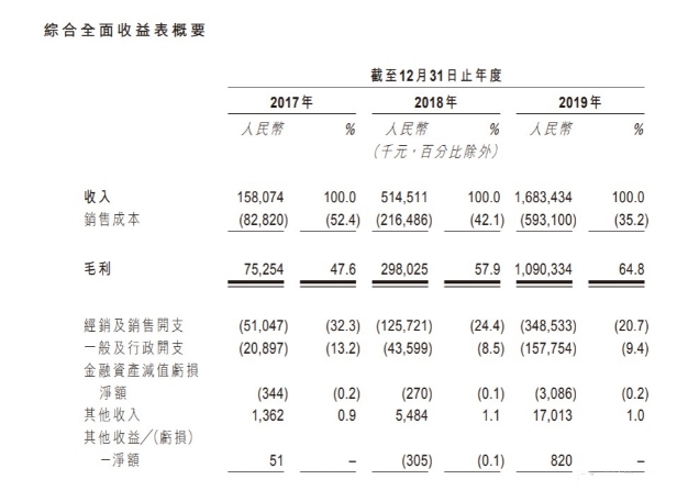 招股书显示,过去3年,泡泡玛特的营收和净利润一直在翻倍,2017年至2018年,网红绿眼金发小人“Molly”这个IP为泡泡玛特贡献的收益居所有IP的首位。2017-2019年营收分别为1.58亿元、5.15亿元和16.83亿元,净利润分别为156.9万元、9952.1万元和4.51亿元。短短三年,营收翻了10倍,净利润翻了287倍。