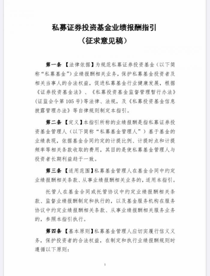 6月5日晚,中国证券投资基金业协会(以下简称“协会”)发布《私募证券投资基金业绩报酬指引(征求意见稿)》(以下简称“《业绩报酬指引》”)。
