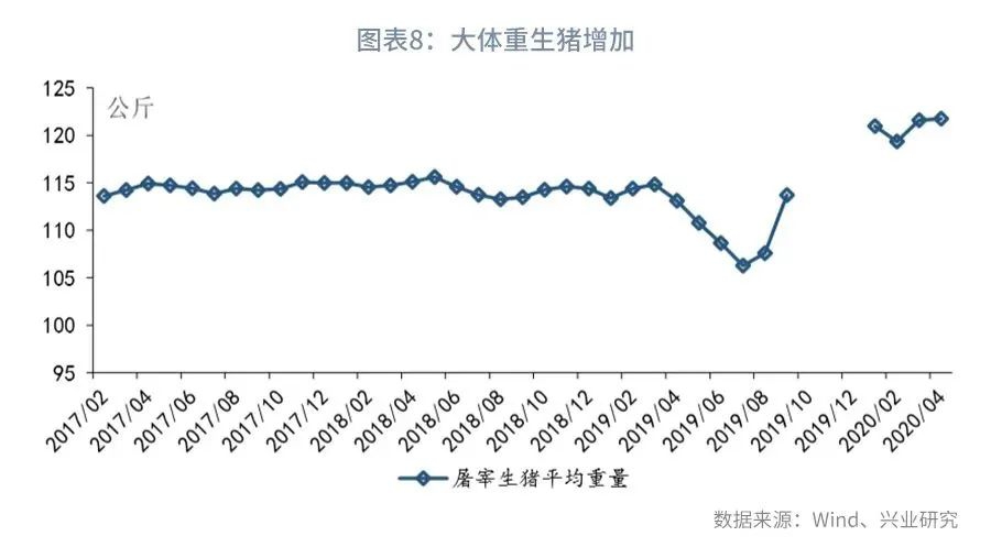 从食品价格来看,大体重生猪集中出栏叠加餐饮消费疲弱,使食品价格跌幅扩大。一方面,在疫情期间,部分生猪由于物流不畅而推迟出栏。在物流恢复后,前期被积压的大体重生猪集中出栏,使猪肉供应显著增加。数据显示,4月屠宰生猪的平均重量为121.8公斤,较去年同期上升了8.7公斤。