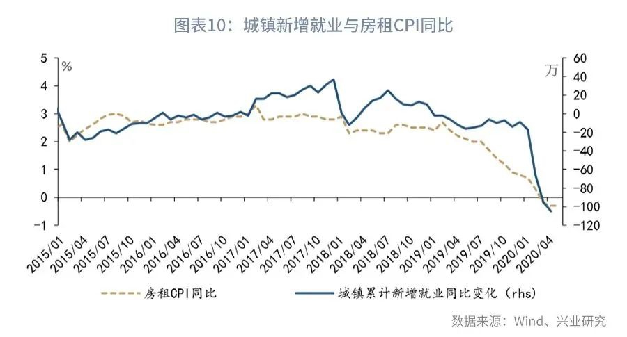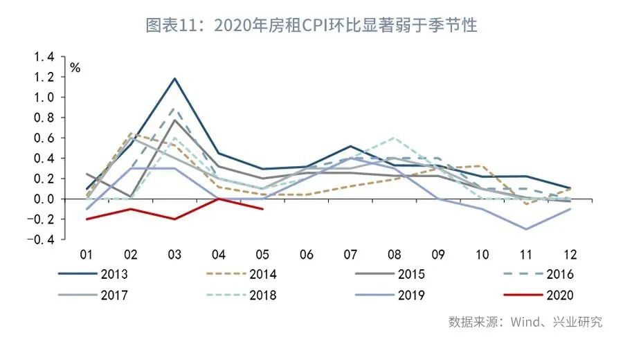 从居住分项来看,就业压力引发房租下跌。4月城镇新增就业累计同比减少105万。新增就业岗位下降影响了租房需求和租客支付房租的能力。PMI数据显示,5月制造业从业人员分项和非制造业从业人员分项均较4月出现回落,反映出就业压力还未得到有效的缓解。因此,2020年以来房租CPI环比始终处于2013年以来各年同期的最低水平。