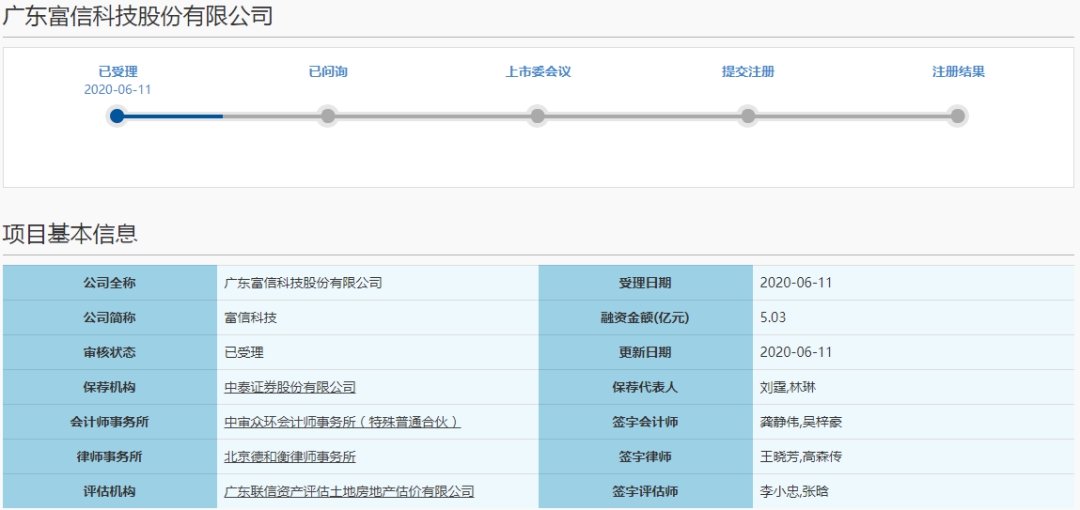 近日,资本邦获悉,广东富信科技股份有限公司(下称:富信科技)的科创板IPO申请近日获上交所受理,其保荐机构为中泰证券。