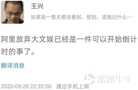 目前长视频领域,大家为了用户烧钱多年,最终形成「爱优腾+芒果」的四强争霸格局,试想一旦腾讯和爱奇艺合体,那么将直接拥有王者段位,对其他两家形成巨大优势,行业格局大变。不知是不是巧合,早在5月28日,王兴在饭否上就表示,阿里放弃大文娱可能只是时间问题。