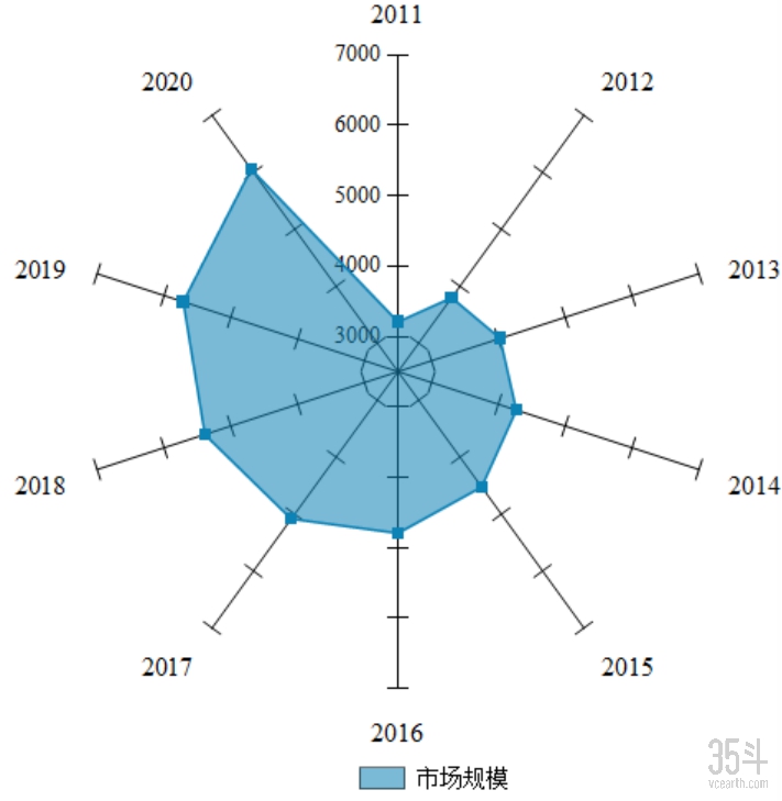 图:2011-2020年中国零食市场规模,图片来源:《儿童零食市场调查白皮书》