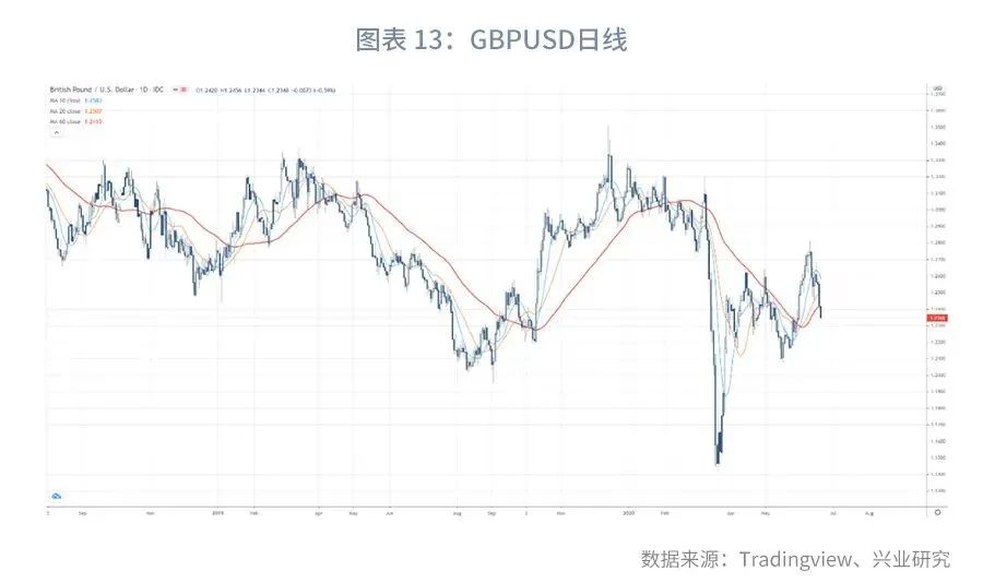 周四(6月18日),英国央行公布六月利率决议,一致投票维持利率在0.1%不变,将量化宽松计划扩大1000亿英镑至7450亿英镑。周四英镑重挫120余点,创两周半新低至1.2432。我们认为当前英国央行实行负利率的必要性和可能性都不大,至少不会早于美联储行动。