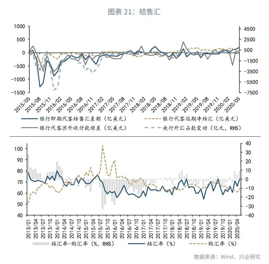 5月即期、远期结售汇,涉外收付款项目均录得顺差,结汇率和购汇率双双反弹反应了企业端生产和经营的积极变化。外管局在答记者问中指出“我国坚持以改革开放为动力推动高质量发展,外汇市场运行的韧性进一步增强,人民币资产展现出较强的吸引力;展望未来,我国经济结构和区域布局持续优化,复工复产复商复市稳步推进,积极变化累积增多,将继续为外汇市场平稳运行提供基本面支撑;同时,我国外汇市场日臻成熟,风险防范机制更加健全,外汇储备规模总体稳定,有能力应对各类外部冲击和挑战”。
