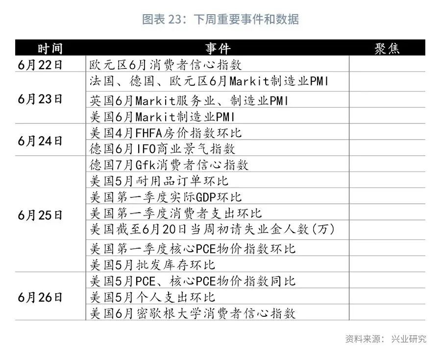 本周三(6月17日)德国内阁批准了约700亿美元的债务以支持经济刺激计划。德国财长肖尔茨表示,如果第二波疫情出现,预计不会采取大规模的封锁措施。欧央行副行长金多斯表示,对于西班牙、意大利和希腊等财政状况较弱的国家,如果欧盟的援助是以赠款而不是贷款的方式分配,情况会更好。
