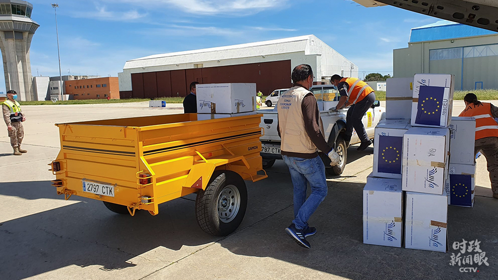 △欧盟为成员国运送医疗物资和设备。(总台央视记者马瑾瑾提供)