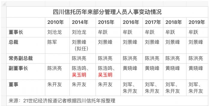 据四川信托投资者提供的一份疑似四川信托内部文件显示,王万峰不再担任党委书记、委员职务;增补吴玉明为党委委员、书记,刘德山为公司党委委员、副书记。落款为2020年6月18日,中共四川信托有限公司委员会。