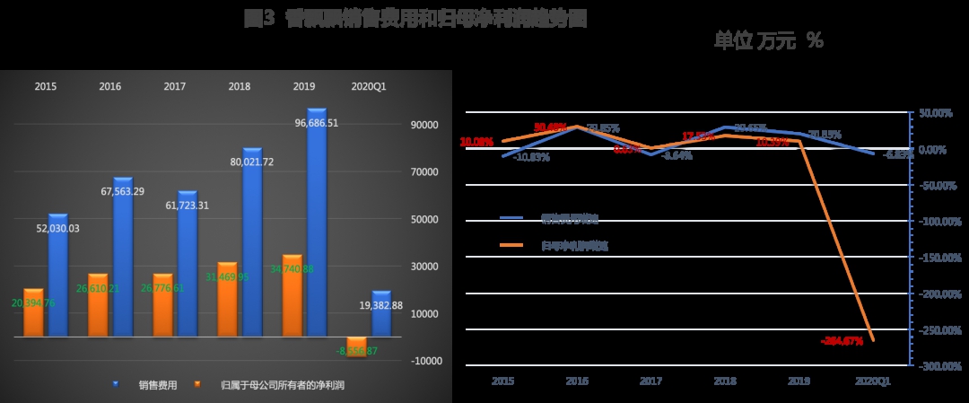梳理2015-2020年公司营业收入与净利润的趋势图(见图3),不难看出,香飘飘“惯性式”的巨额销售成本,已超越其同期归母净利润。对此,香飘飘证券事务部有关人士告诉《投资者网》,“公司的理念并非是净利率越高越好,而是把费用投入视为一种投资”,可以看出,香飘飘仍然把“占领心智”视为头等重要的大事,加强营销费用投入,目的是“做好消费者培育和教育,建立消费者对新品的认知,推动细分市场发展”。