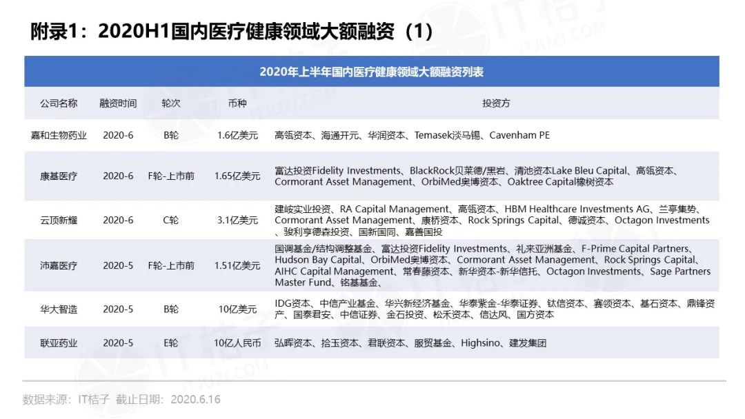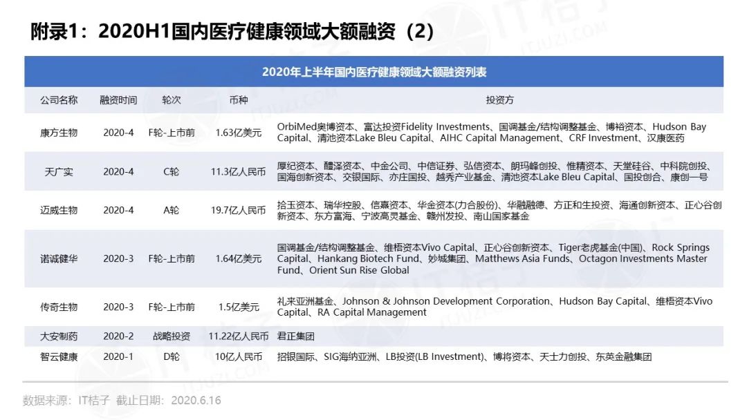 以下为《2020 上半年中国医疗健康领域投融资分析报告》内容: