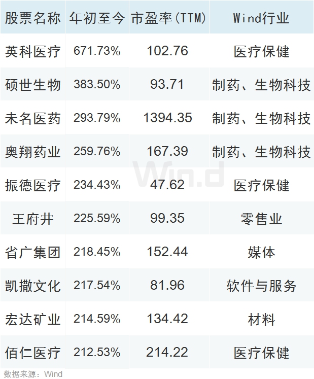 剔除新股后的316家医药股中,今年以来涨幅超过100%的企业高达39家,涨幅超过50%的企业则高达103家。