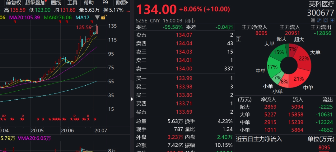 截至7月3日晚收盘,英科医疗股价已达到134元/股,市盈率高达107.8倍。