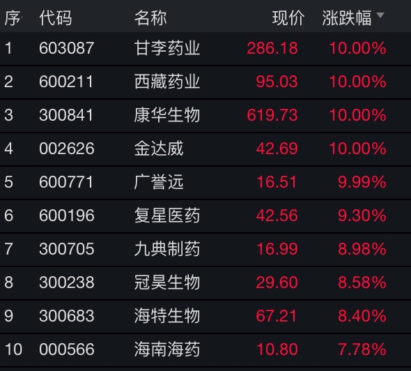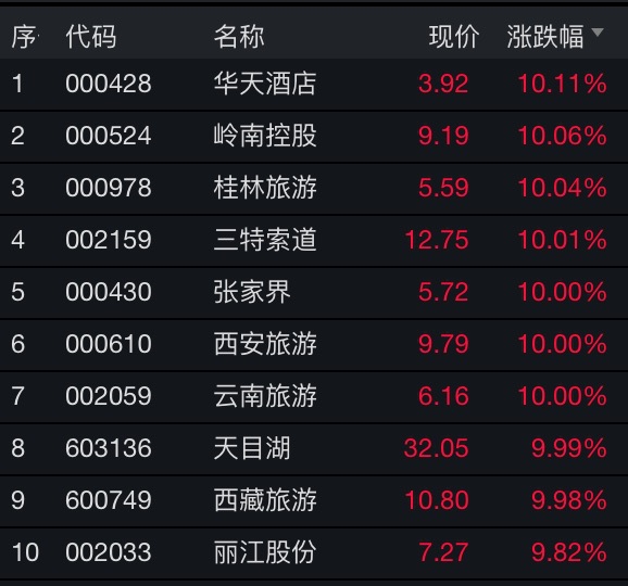 休闲服务和医药生物板块内更是掀起涨停潮。Wind数据显示,截至午间收盘,休闲服务板块内,华天酒店、岭南控股、桂林旅游、三特索道、张家界等10只个股涨停;医药生物板块内,甘李药业、西藏药业、康华生物、金达威、广誉远5只个股涨停。