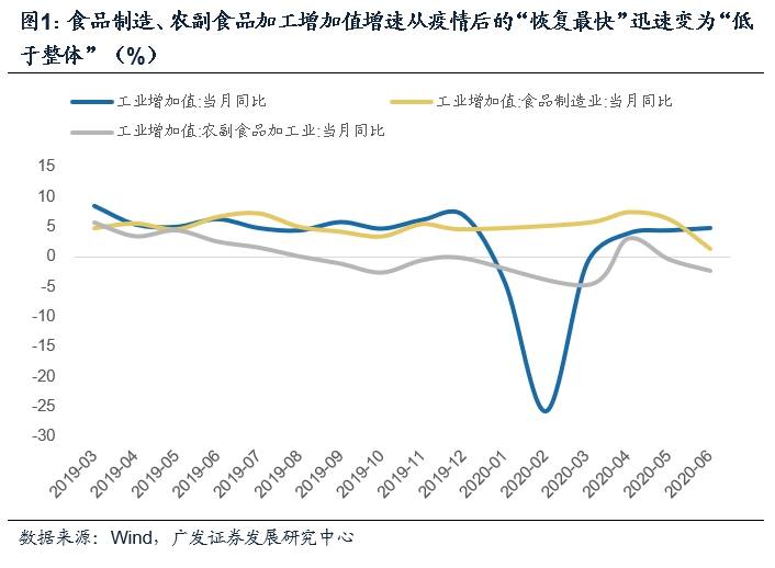 1)食品制造、农副食品加工这样的行业,增加值增速从疫情后的“恢复最快”迅速变为“低于整体”。
