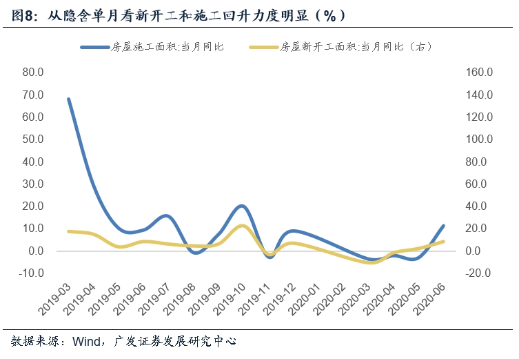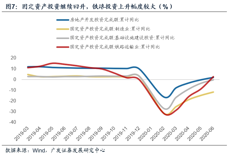第七,我们可以大致按3%、4%、5%的坐标理解二三四季度实际增长。如我们中期报告所述,下半年对经济继续形成带动的将会是基建、服务类消费和欧美复工结构性相关的出口;就这三条线来说,6月数据已进一步显示端倪。