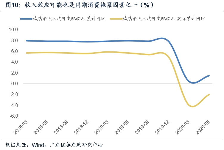 城镇居民可支配收入累计增速1.5%,也较一季度的0.5%回升;但扣除价格因素,实际下降2.0%;农村居民人均可支配收入增长3.7%,扣除价格因素,实际下降1.0%。收入效应可能也是同期消费拖累因素之一。