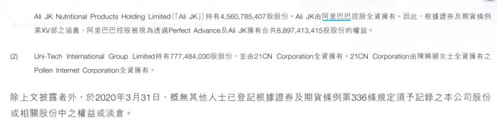 阿里健康2020财报显示,阿里巴巴为阿里健康的第一大股东,马云、虞锋均持有股份。