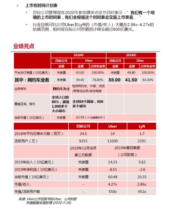拍卖页面详情显示,行业目前可比Uber及Lyft(市值/收入)大概在2.86X至4.27X的估值范围,对应目标公司市值预计将会超过600亿美元(约合4194.36亿元人民币)。