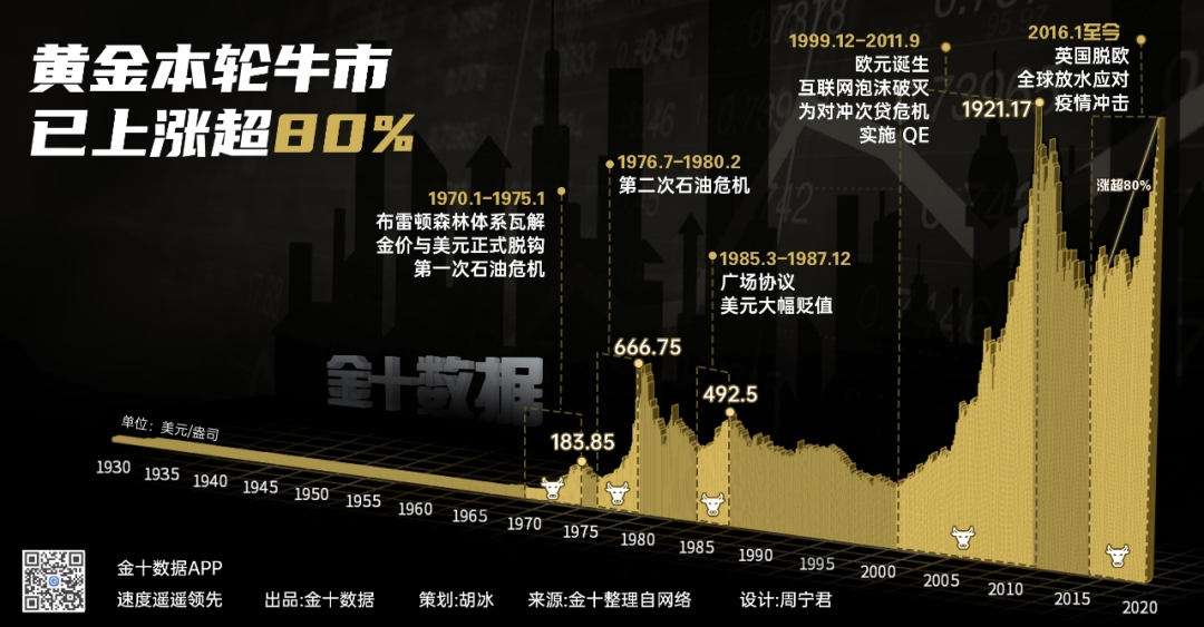 本周,现货黄金持续走高 ,多次刷新近9年高位。北京时间周五凌晨,黄金猛烈上攻1900关口,但最终铩羽而归,最高涨至1898.89美元。但周五美盘前,多头再次发力,助攻黄金成功上破1900关口,续刷2011年9月以来新高。1921.17美元的历史高点,似乎已是触手可及。