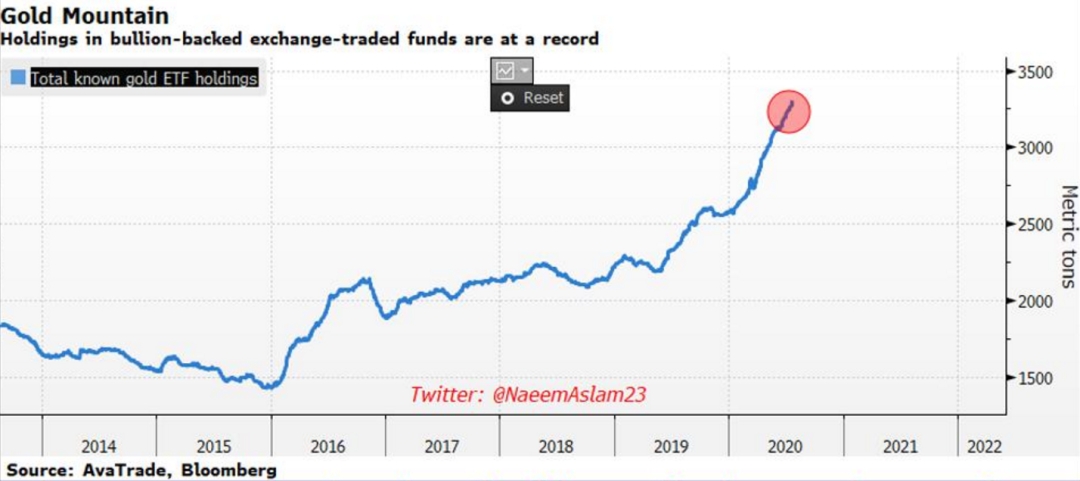 如下图所示,黄金ETF持仓规模近期持续上升,交易员往黄金市场注入了大量资金。