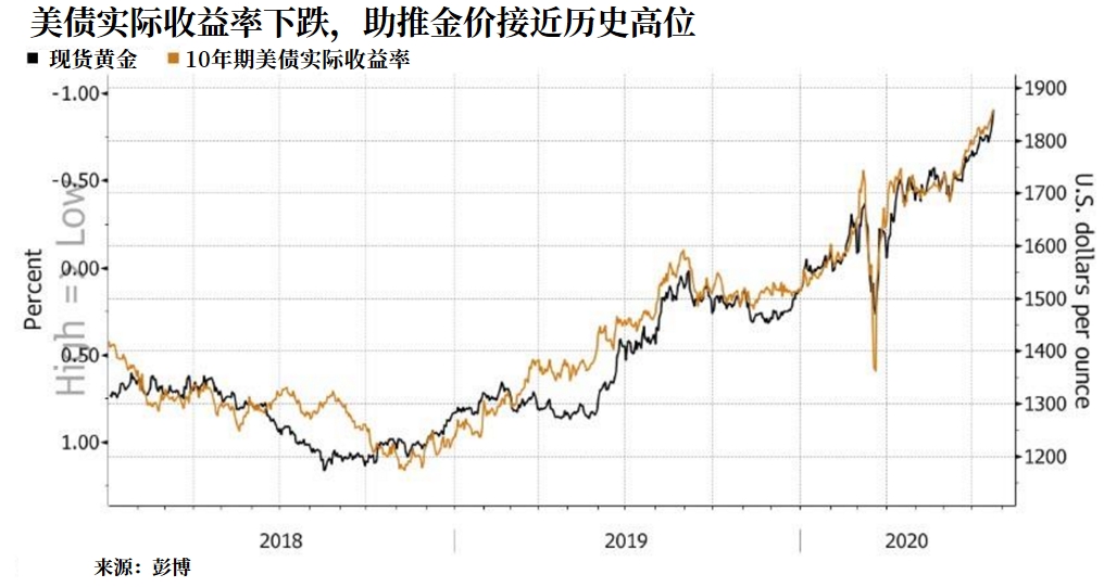 从目前的情况来看,低利率、大规模刺激政策(包括财政政策和货币政策)、美元走软是黄金的主要利多;通缩前景以及美债收益率可能趋陡则是黄金突破历史新高的主要利空。