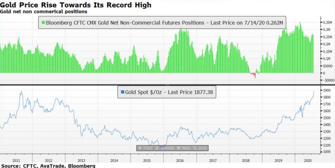 除此之外,CFTC持仓数据也显示,黄金非商业性投机性净多头头寸不断增加,交易者已经为推动金价突破历史新高疯狂蓄力。
