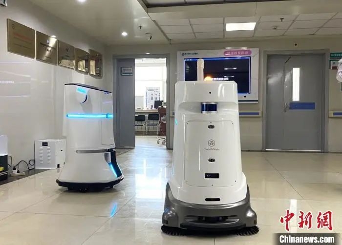资料图:银川市第一人民医院内,智能机器人正在工作。 杨迪 摄