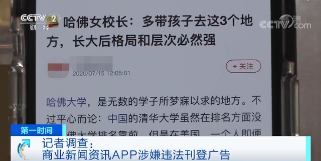 商业新闻资讯App涉违法刊登广告