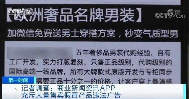 在调查中,记者还发现,有的商业新闻资讯App不但违法刊登没有明确标识的广告,而且充斥着大量售卖假冒产品的违法广告。
