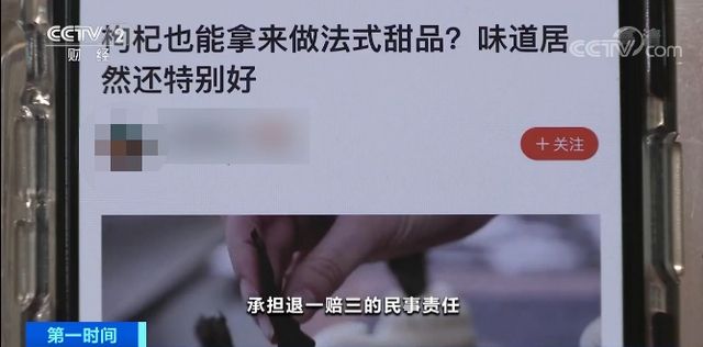 在凤凰新闻客户端,一篇文章标题说的是用枸杞制作甜品,但文章只写了四行字,就开始推荐一家甜品店,详细地介绍了店里的特色甜品,而且附上了地址和预约电话。