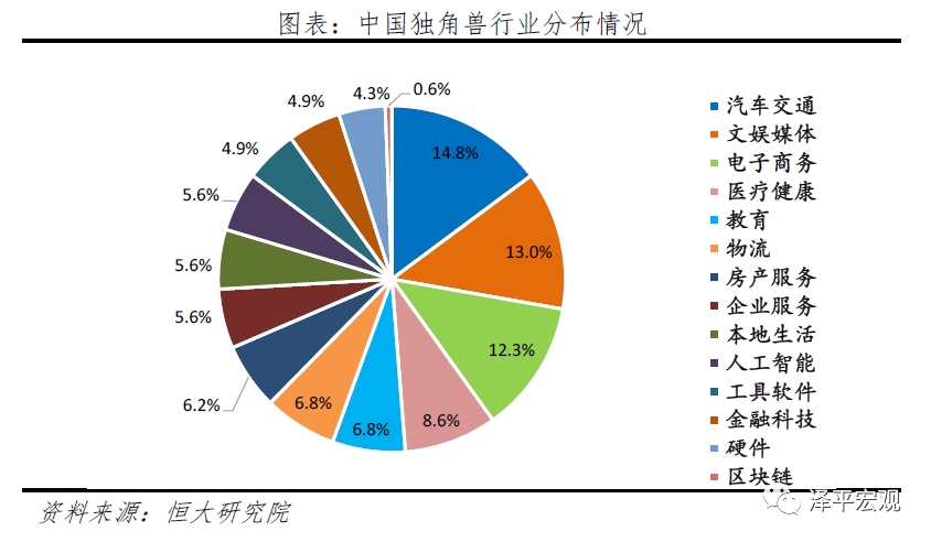 2.2 行业分布:汽车交通行业独角兽数量最多
