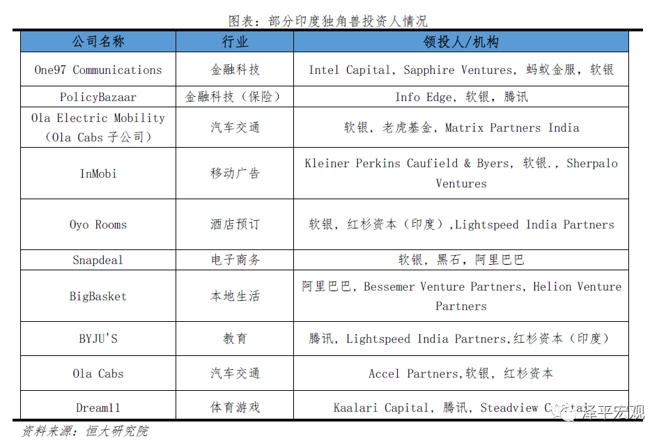 印度成为近年全球投资热点。1)印度经济发展较快、人口基数大且结构年轻、互联网用户渗透空间大,因而成为投资机构和互联网企业出海的重点布局对象。2018年印度GDP总量2.7万亿美元、同比增速7%,总人口13.5亿、65岁以上人口占比仅约6%,2019年互联网月活用户4.5亿人、渗透率约36%。2)各大投资机构主要考虑印度可能成为与中国同等体量的庞大市场,未来经济进一步发展、人均可支配消费提高、消费升级,因此被投资行业集中于电子商务、本地生活(外卖、生鲜)、快递、支付等与中国发展历程相似的互联网服务领域。3)中国大型互联网企业、国际创投机构是促进印度独角兽诞生的主力军,包括阿里巴巴、腾讯、软银、红杉等。不过尽管全球投资者、印度初创企业、国内出海企业希望复制中国互联网行业的成功,但是由于印度基础设施欠发达、语言语种众多、社会阶层差异大、产业链不完备、劳动力市场效率较低,印度企业未来是否能盈利做大尚存疑,大部分印度独角兽存在估值过高现象。
