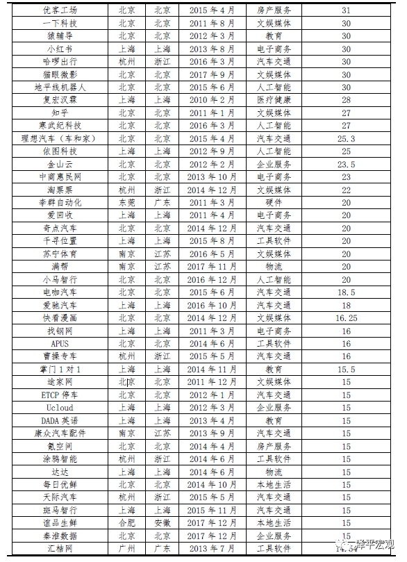 注:当期独角兽总数=上一期总数+新生数量-上市、兼并收购等退出数量。因此,新生数量不一定等于同比增加数量。