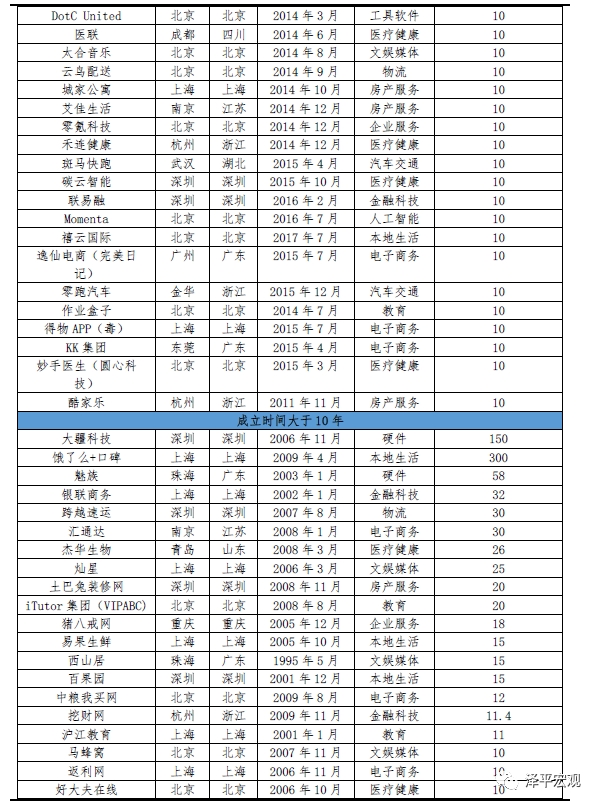 注:广义独角兽即成立时间不限,狭义需不超过十年。在选择对象时,我们主要考察以下4点:1)企业产品或者提供的服务的核心价值;2)企业产品或者提供的服务的流量价值;3)企业产品或者提供的服务所能带动的辐射价值;4)商业模式价值。在测算估值时,由于独角兽未上市且大部分为互联网企业,主要采取乘数估值法(包括市盈率与市销率)、可比公司法、融资投资法(详情参考《中国独角兽报告:2019》)。
