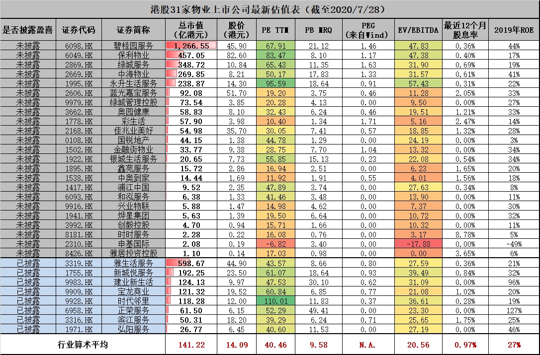 因此,对于这一热门板块,富途研究团队始终保持着高度的关注和持续追踪。就物业板块近期的动态而言,最重大的事件莫过于,一众物业股纷纷披露2020年中报的盈喜公告。截至今天(7月28日),31家港股物业上市公司中,已经有8家披露了盈喜公告,其中有2家,即正荣服务和滨江服务的中报归母净利润预计同比增长不低于90%,另外的6家的中报归母净利润预计同比增速也不低于50%。