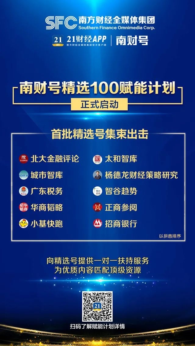 南财号是由南方财经全媒体集团倾力打造,依托21财经客户端运营的财经订阅号平台,来自全国各地的经济管理部门、智库机构、金融机构、企业、专业媒体以及知名学者,为用户提供全方位、全时段的财经资讯和深度分析。