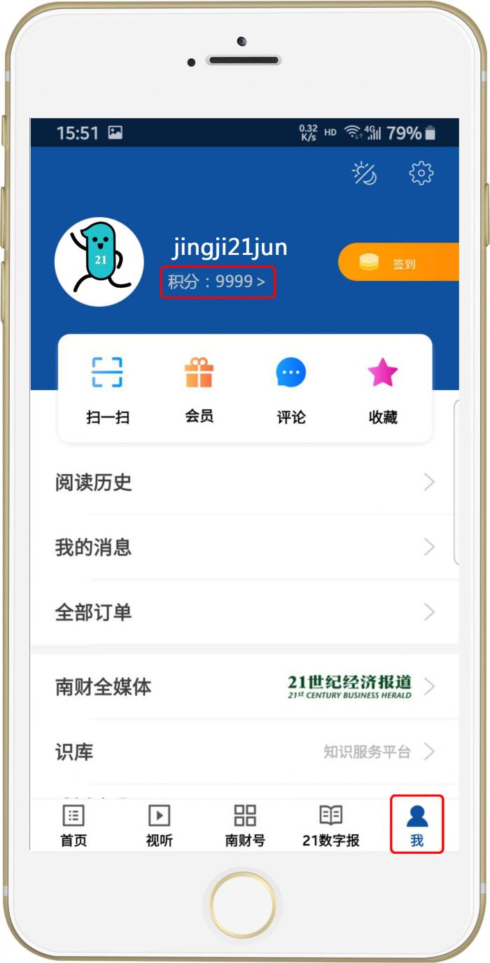 完成订阅任务后,点击下方菜单“我”,