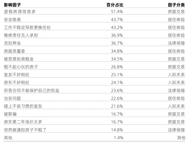 租房中的“坑”,很多毕业青年都容易遇到。据贝壳研究院数据,51.4%受访样本反馈,虚假房源信息是最大的租赁痛点,其次是安全隐患及工作不稳定导致更换住处。尤其是女性青年来说,安全隐患更是需要关注的痛点。调研数据发现,有45.82%的女性受访者表达担心安全隐患问题,而女性受访者的比例仅为35.19%,差异较明显。