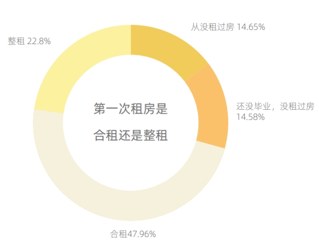 合租,几乎是一半大学生们的选择。贝壳研究院调研数据发现,约48%的受访者表示,毕业时会首选合租,其次才是整租形式。以北京为例,整租的套均租金要比合租的单间租金高出近一半房租。