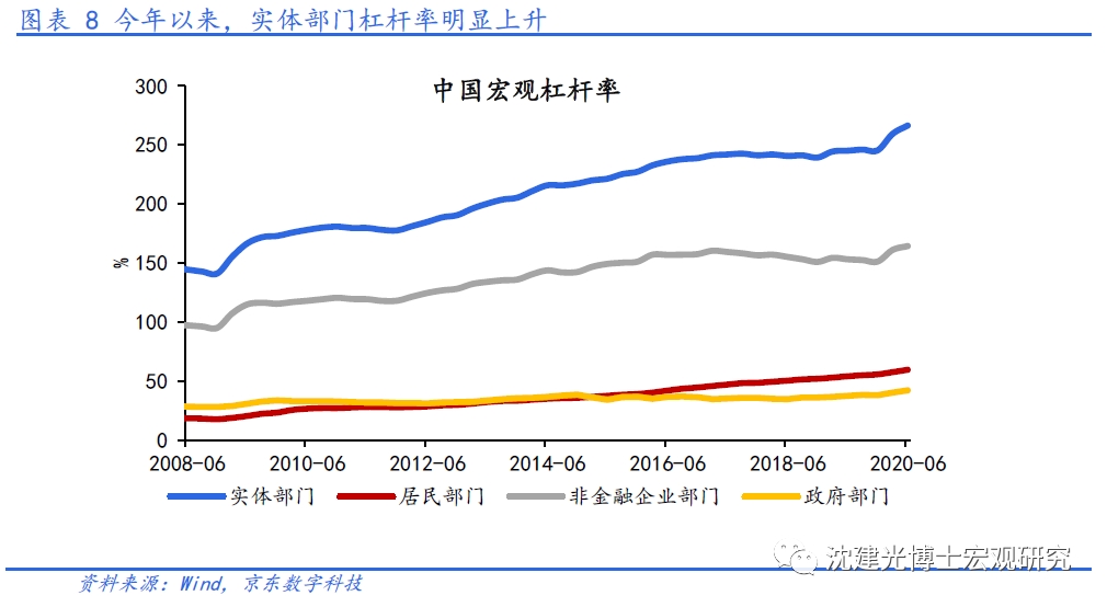 货币政策退出“极度宽松状态”,通胀并非核心关注点。二季度货币政策执行报告以及周末易纲行长的采访中强调,“稳健的货币政策更加灵活适度、精准导向”,“实现稳增长和防风险长期均衡”。在笔者看来,随着国内经济恢复态势向好、宏观杠杆率明显上升,货币政策已退出前期“极度宽松状态”,着力点向“稳企业”、“保就业”、“防风险”倾斜。