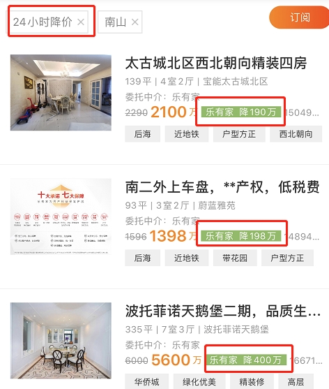 在当天凌晨发现,南山、宝安、福田等热门片区均出现了降价现象,有业主在新政出台后降价高达400万。