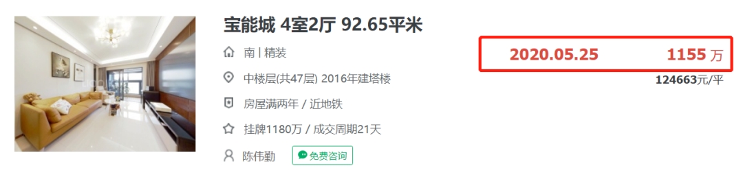 据证券时报报道,宝安中心有楼盘业主在房源APP上给中介备注“挂牌价格是1100万,实际价格1180万”。