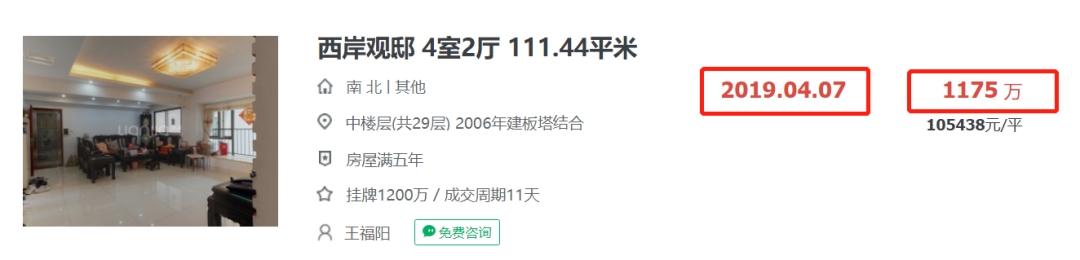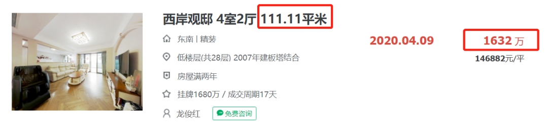 还有西岸观邸,目前只有两套在售房源,二手房均价已经去到15.4万/㎡。