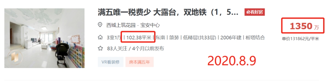 新政后,查询相同户型的挂牌价,发现高达1350万。