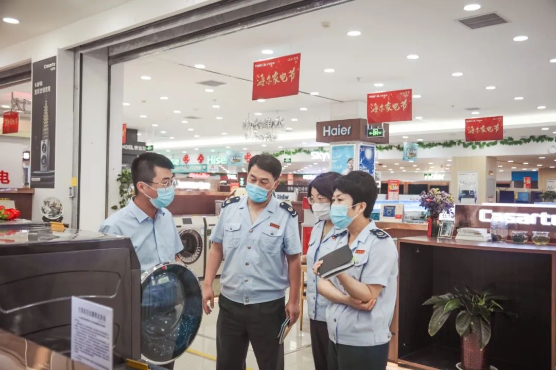 图为威海市税务干部了解威海三联家用电器有限公司生产经营情况。